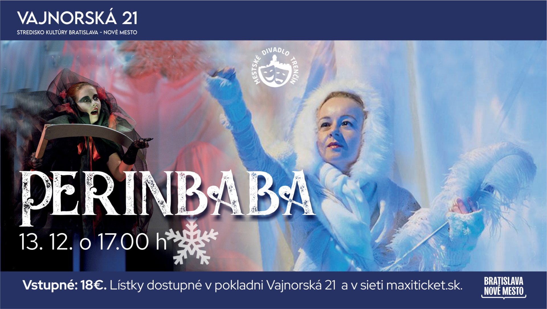 Rodinná inscenácia autora Ľubomíra Feldeka v réžii Karola Rédliho s hudbou Diany Minarovičovej vás príjemne naladí na zimný čas. Muzikál Perinbaba je určený všetkým generáciám. Zapozerajte a započúvajte sa do príbehu legendárnej lásky, ktorá je silnejšia než smrť.