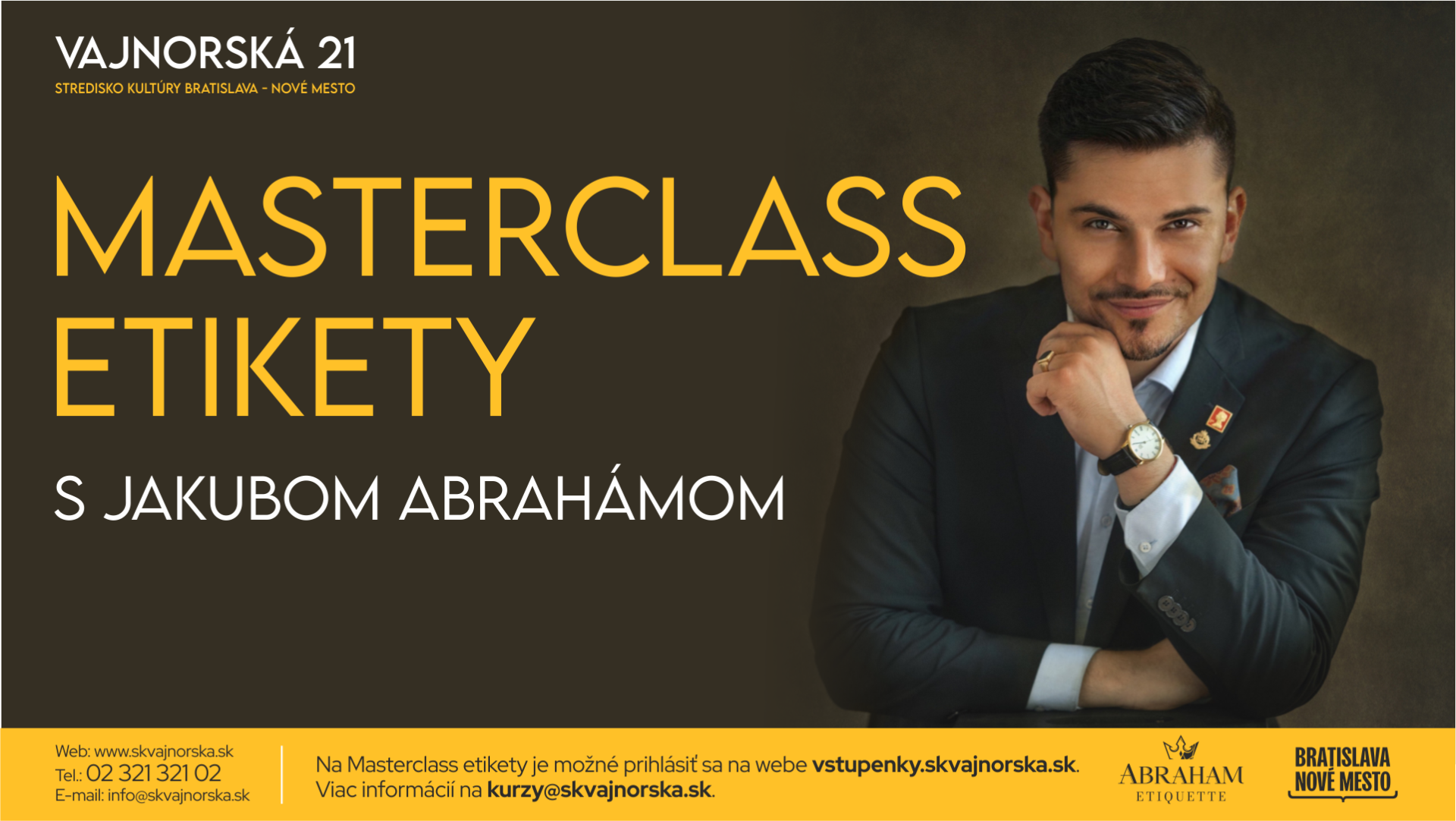 Prihláste sa na Masterclass etikety, ktorým vás prevedie na Slovensku ten najpovolanejší. Skúsený a certifikovaný kouč etikety a komentátor britskej kráľovskej rodiny Jakub Abrahám.