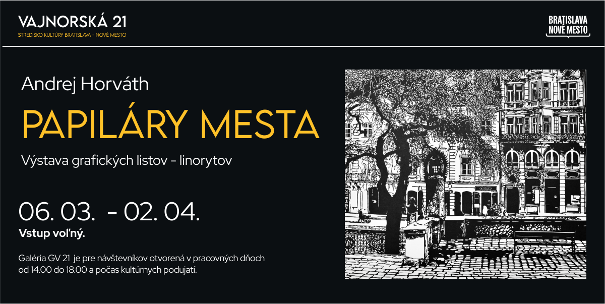 Predajnú výstavu v Galérii GV 21 si návševníci môžu pozrieť od 06.03. do 02.04. v pracovných dňoch od 14.00 do 18.00 a počas kultúrnych podujatí.